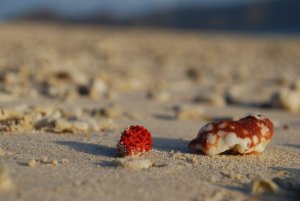 Pasir pantai Barat ini sangar lembut, lebih empuk dari spring bed di kosan saya. Warnanya putih, seperti gula pasir yang diberi pemutih di supermarket. Tiduran dulu ah…..Banyak sekali potongan terumbu karang dan kerang-kerang yang terhempas ke pantai, saya paling suka dengan teripang merah, warnanya eksotis. Sayangnya warna merahnya hanya akan menyala jika dibasahi dengan air laut, jadi kalau di bawa pulang warnanya akan pudar menjadi kecoklatan. Memang, seperti kata ayah saya dulu, jika pergi ke pulau terpencil janganlah membawa sesuatu kecuali kenangan, dan janganlah meninggalkan sesuatu kecuali jejak. Alright, Dad. You’re right.
