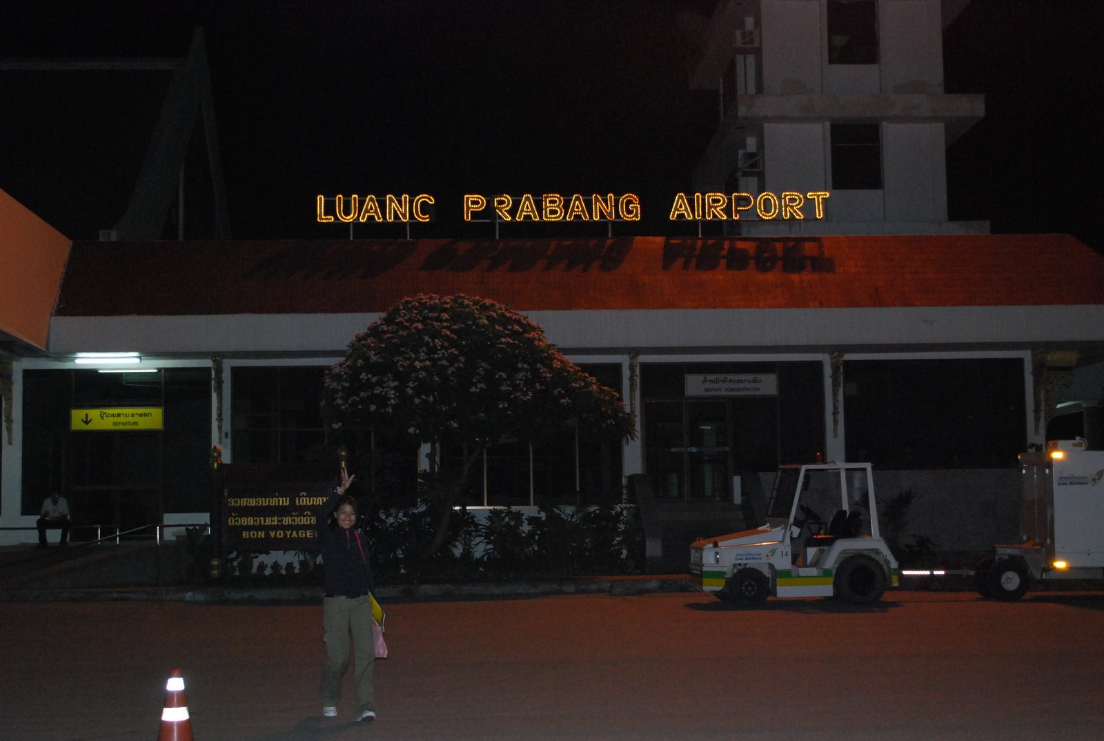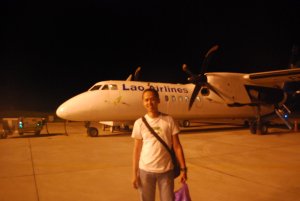 The night was falling as we approached the Luang Prabang airport. We (I and Jomima) were on board Lao Airlines from our departure point of Hanoi after spent a week in that lovely capital city of Vietnam.