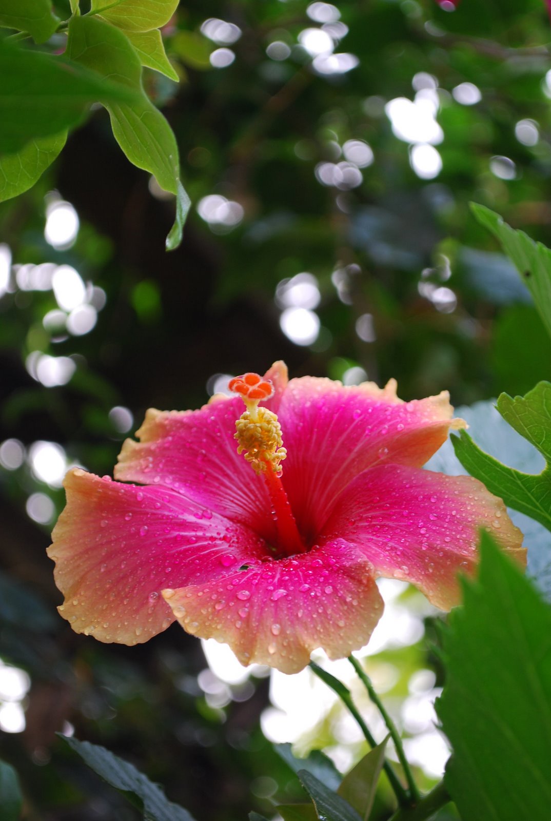 Hibiscus with its dew drops that early morning when we left Thongbay Guest House