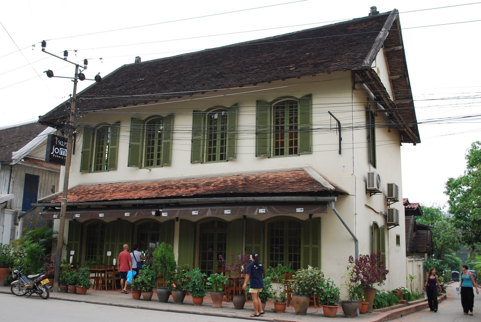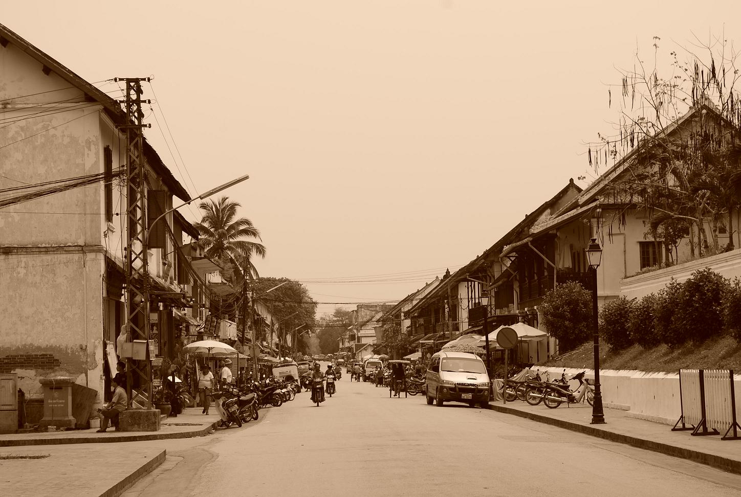 Sisavangvong, the heart of Luang Prabang. Tourist will pack this road during dinner time, after their spending the whole day trekking or cruising the Great River Mekong. French pastries, Asian food or European alike are available here, all along the restaurants with terrace facing the quiet street.