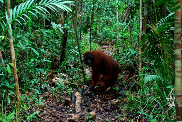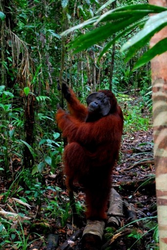 Welcome greeting dari Burhan, orangutan raksasa di tengah jalan menuju feeding site