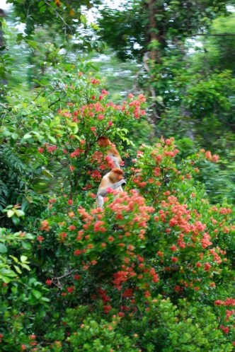 Sesekali terlihat kumpulan Bekantan (Nasalis Larvatus) bercengkerama di dahan-dahan pohon Rambai yang menjuntai ke sungai, mereka memakan pucuk-pucuk daun berwarna merah. Tentu saja yang paling aktif adalah bekantan-bekantan muda, sementara sang induk tampak menggendong anak bayinya, dan sang ayah yang bertubuh paling besar hanya mengamati dari singgasananya di dahan tertinggi.