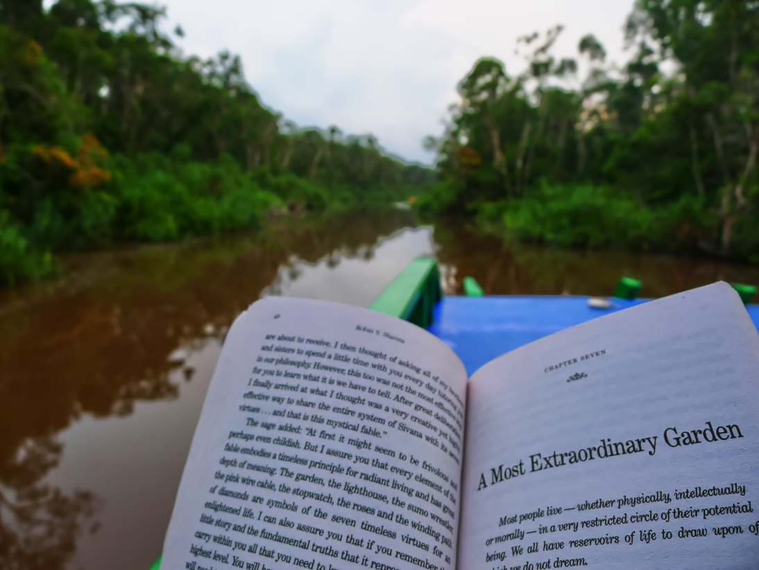 Pada setiap senja yang kami lewati, kebijaksanaan Buddha, Yesus Kristus dan Muhammad menjadi pengiring pergantian hari. Saya selalu membaca buku di anjungan perahu, ditemani redup matahari yang memerah. Cekikikan bekantan yang bergelantungan di dahan-dahan bakau kadang menjadi hiburan tersendiri. Kadang hanya burung elang yang mengangkasa, terlihat dari sela-sela pucuk pohon meranti. Selebihnya sunyi.